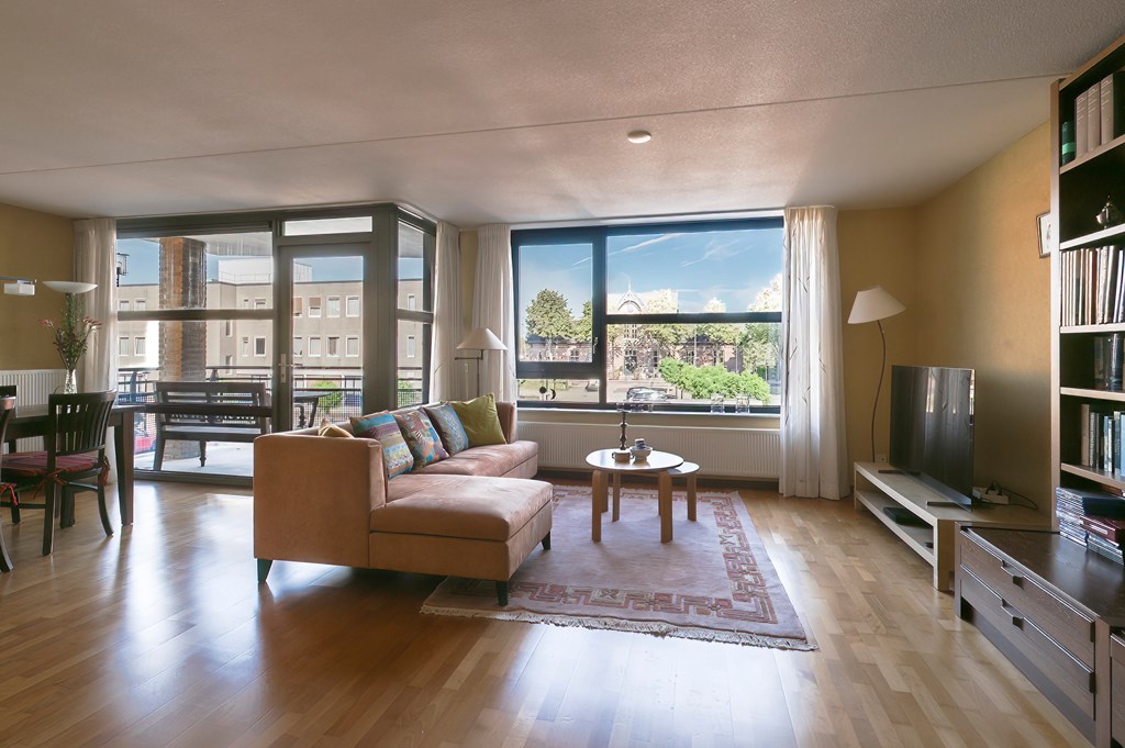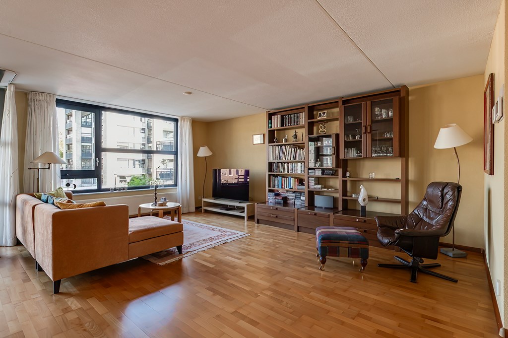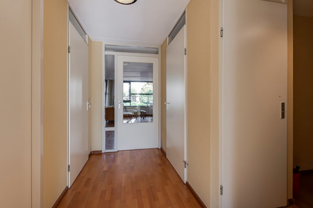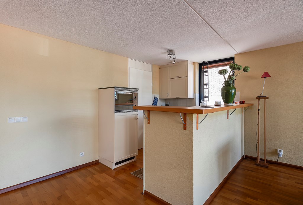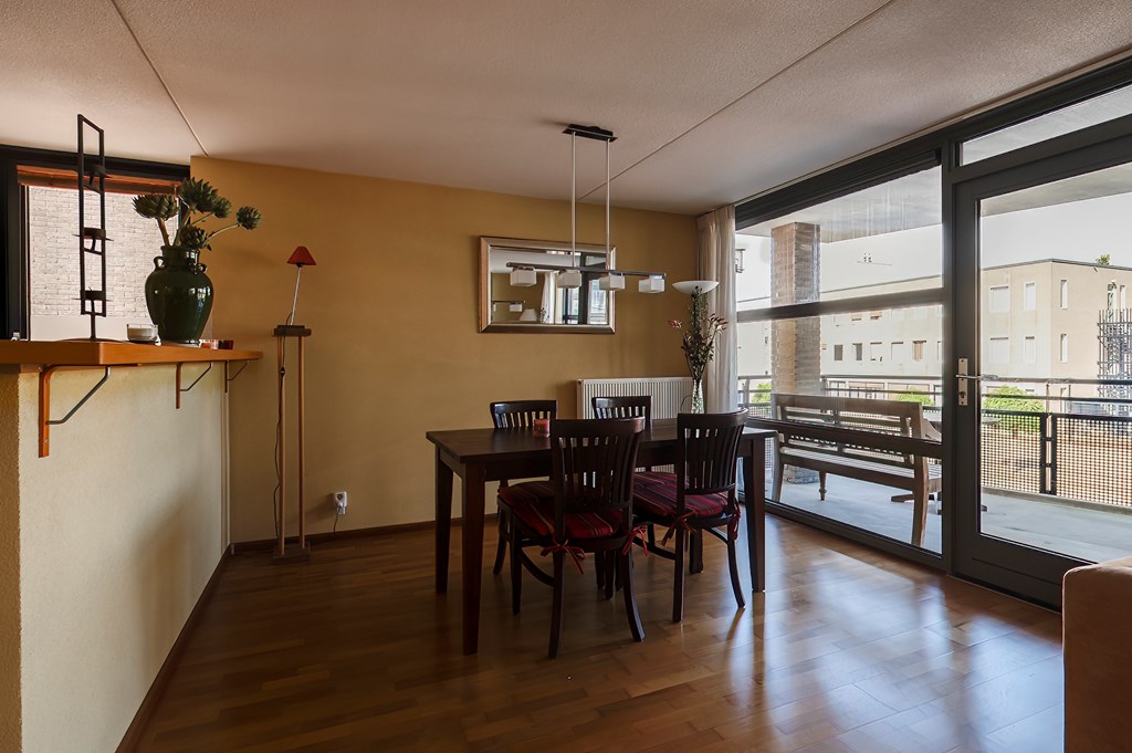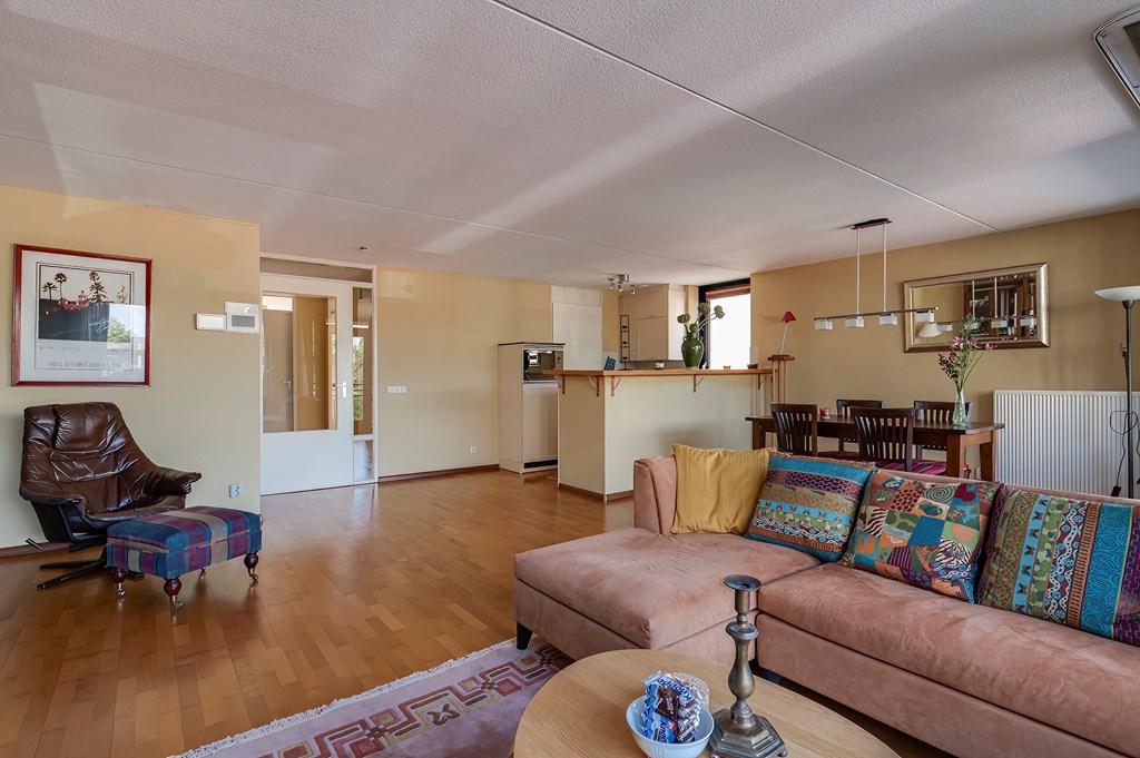 De lichte woonkamer biedt een fraai uitzicht en geeft toegang tot een heerlijk balkon met hetzelfde fraaie uitzicht als de woonkamer. Het appartement bevindt zich op de eerste verdieping en is bereikbaar met de lift, wat het perfect maakt voor senioren.