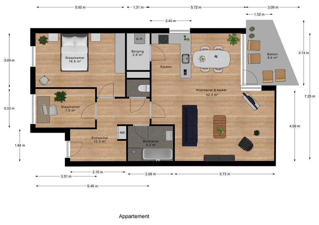 Extra pluspunt: je beschikt over een eigen parkeerplaats in de parkeerkelder en een aparte berging.
